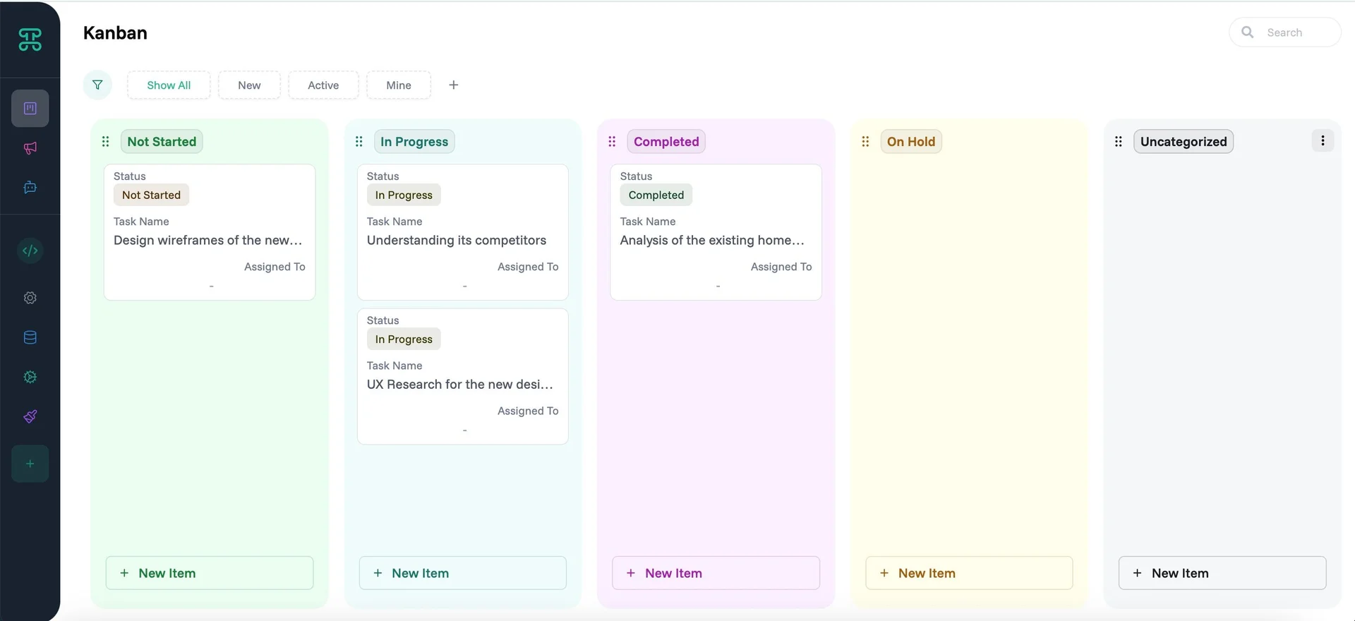 Transform lists into visual workflows. Kanban boards show records as cards organized in columns, typically representing stages in a process.