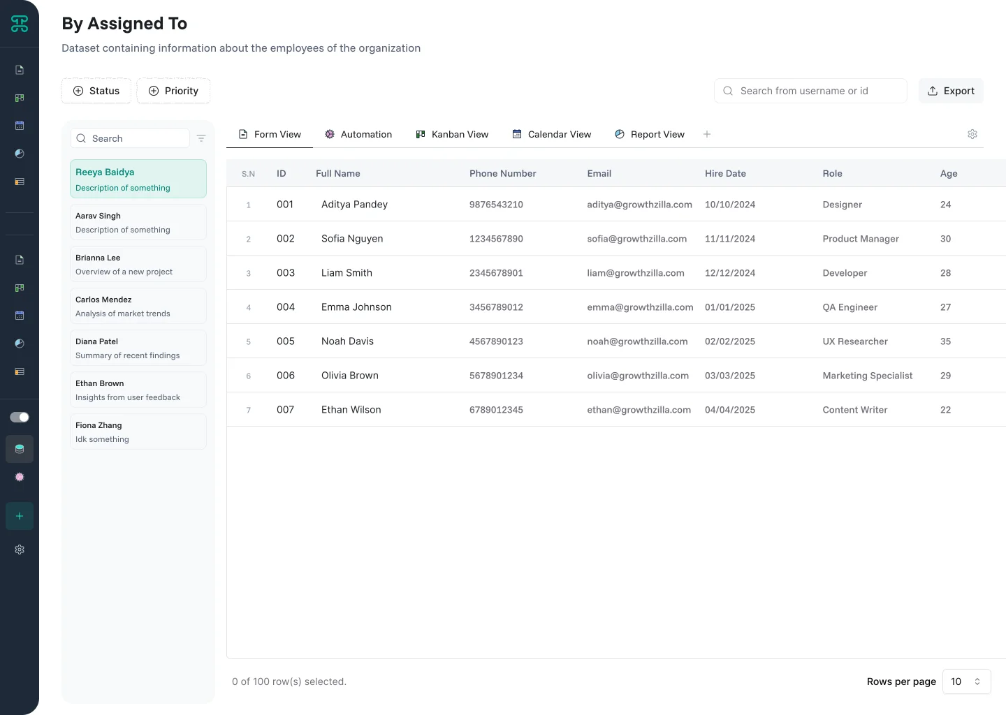 The power lies in direct manipulation. Click any cell to edit. Select multiple rows for bulk operations. Drag column borders to resize. Reorder columns by dragging headers. Every interaction feels natural to spreadsheet users while providing database-level consistency.