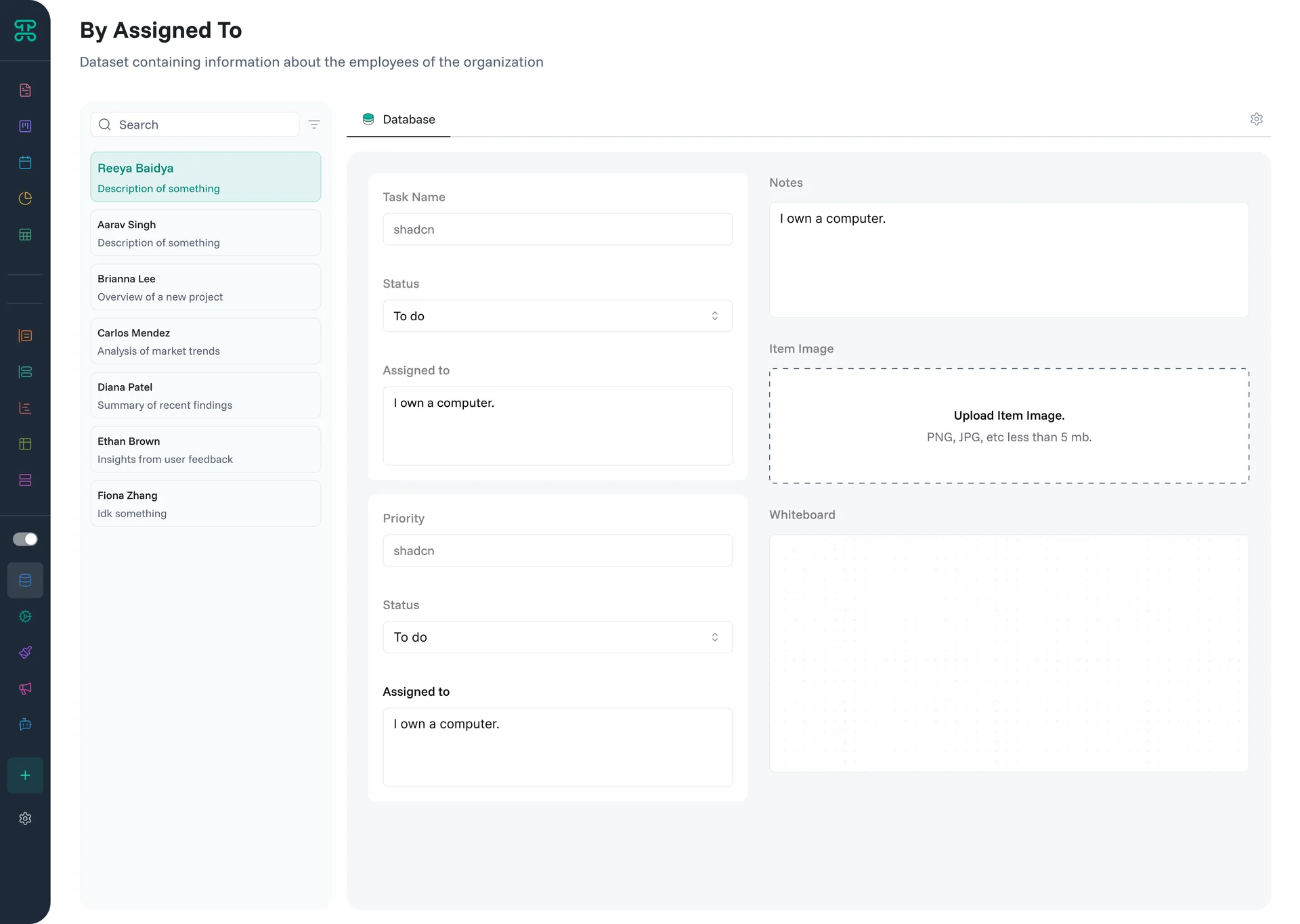 Browse your data as individual records with full context. List detail interfaces excel when you need to focus on one record at a time with all its details and relationships visible.