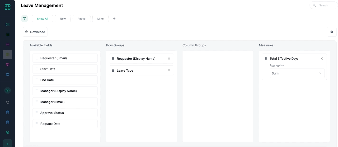 Organize large datasets into manageable clusters. Group interfaces create hierarchical views that make thousands of records navigable and understandable.
