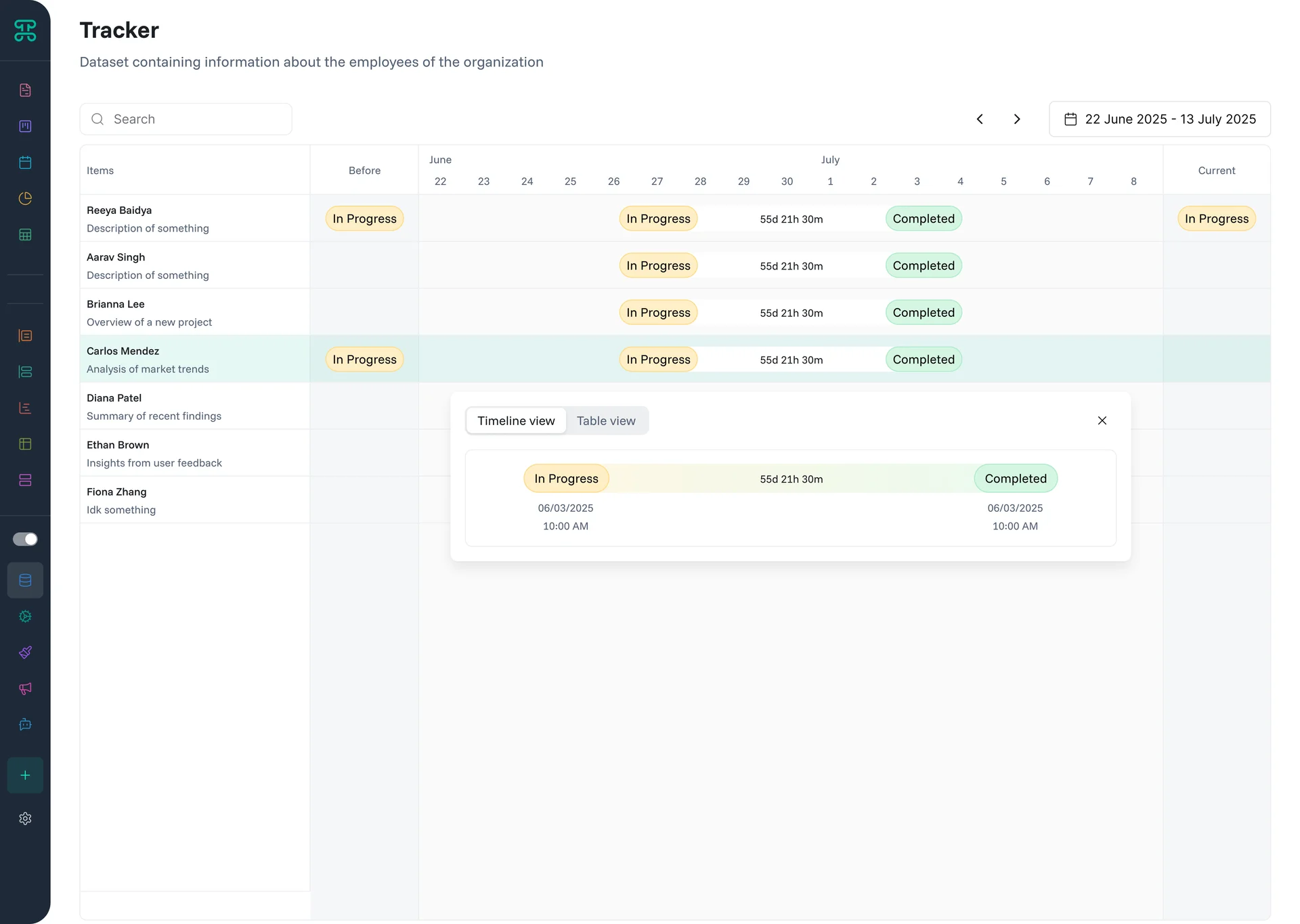 Interfaces are dynamic views that transform how you interact with your data. Build visual experiences without code that match exactly how your team works—from spreadsheet-like tables to drag-and-drop boards to interactive dashboards.