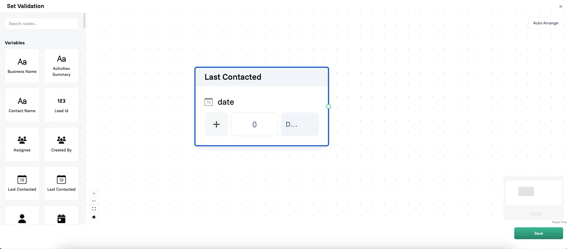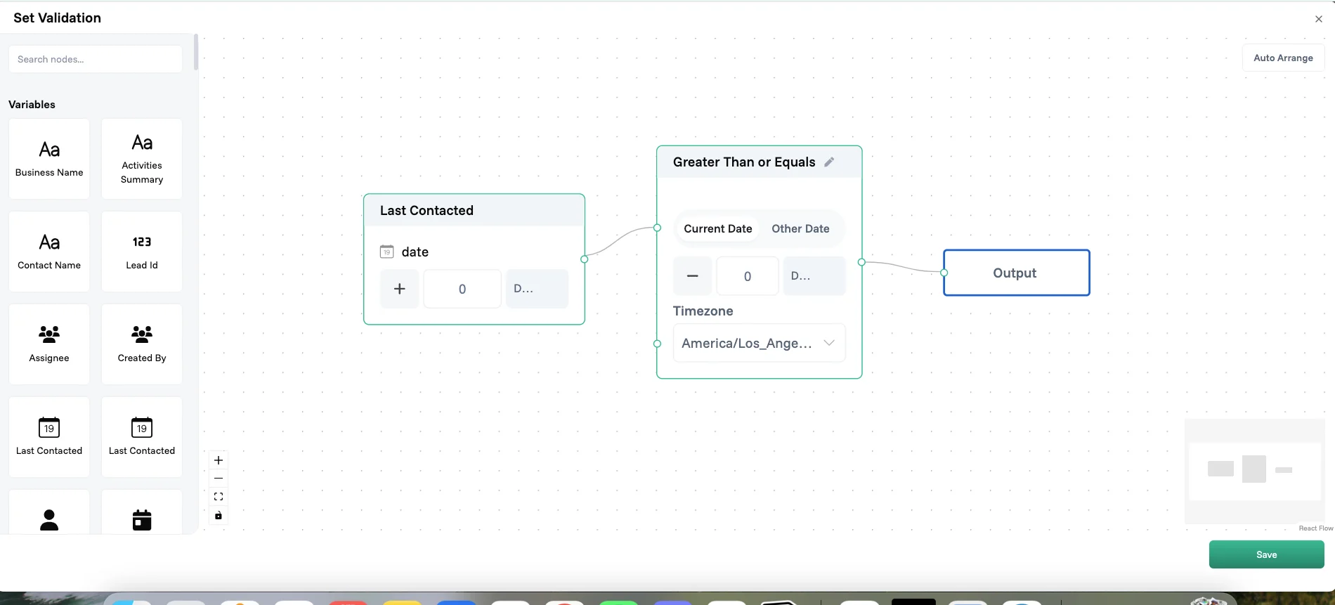 How It Works: When you set decision logic on a field, the Logic Composer presents a visual interface where you'll define your rule. The column being validated must be present in your logic flow and must connect to the output node. Reference other fields using the @ symbol (@FieldName), use comparison operators (>, <, ==, !=), and combine conditions with logical operators (AND, OR, NOT). When validation fails, users see a warning signal on the field, preventing them from saving invalid data. The validation message guides them to correct the issue before proceeding.