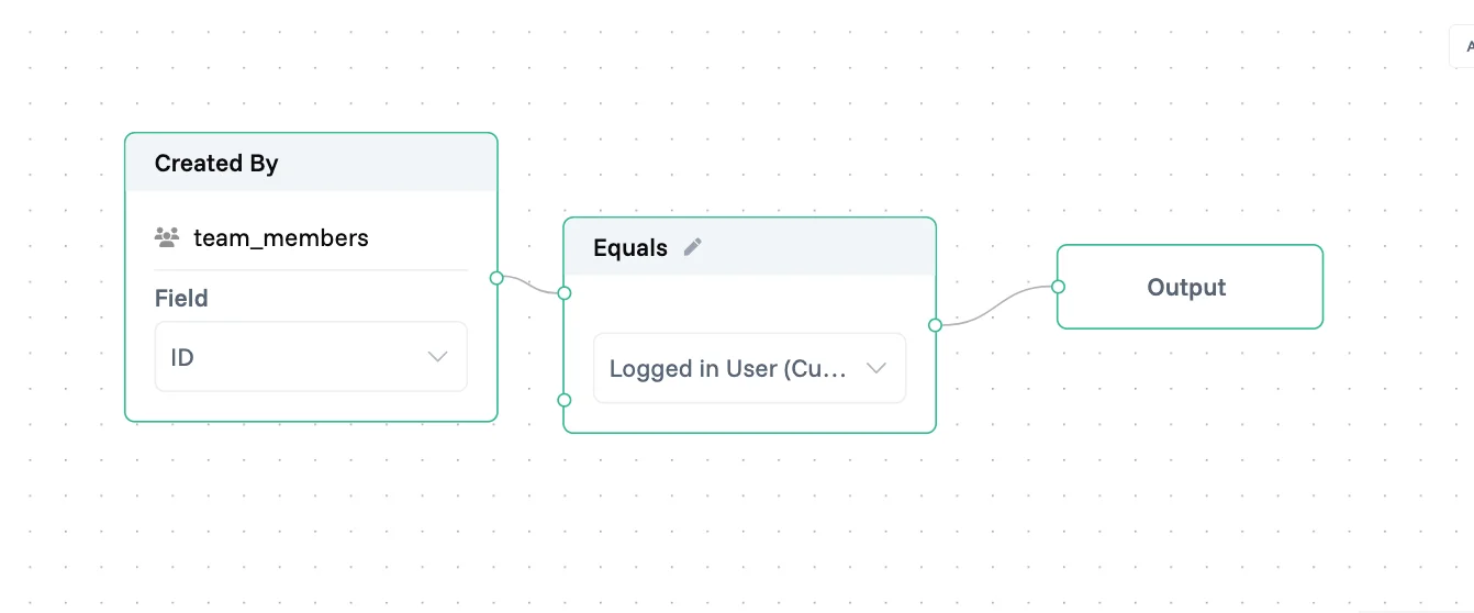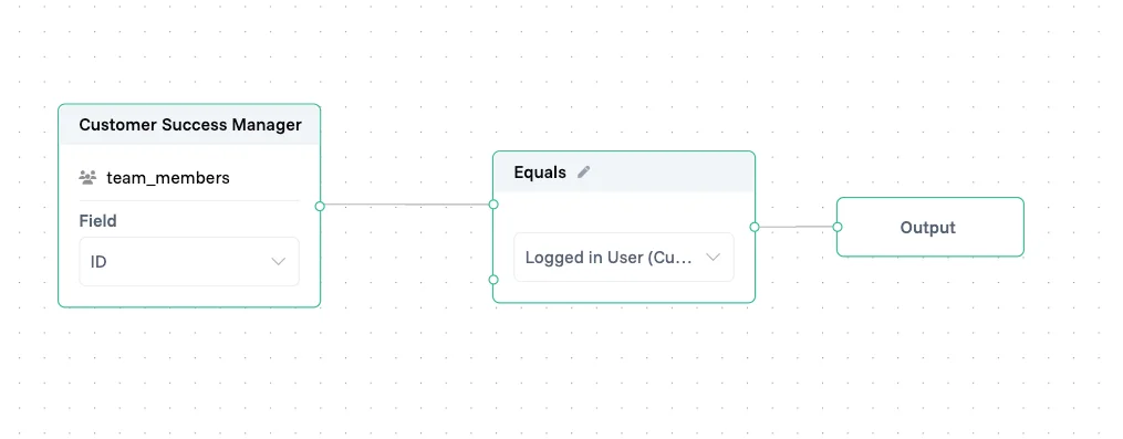 How It Works: Filter logic must produce a boolean output (true/false) connected to the output node. Build conditions like Status == "Active", @Amount > 1000, or @Department in ["Sales", "Marketing"]. Connect multiple conditions using AND/OR operators to create sophisticated filters. The logic evaluates each record and displays only those where the condition returns true.