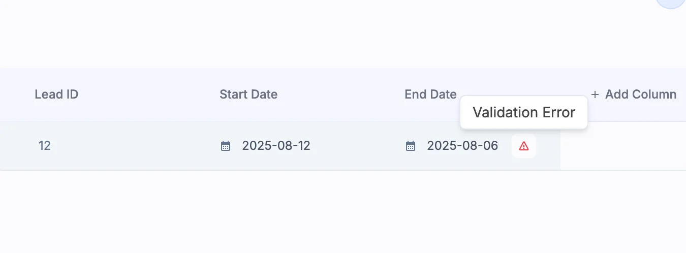 Decision Logic validates data entry and enforces business constraints at the column level. Every typo, every impossible date, every out-of-range value that enters your system creates a ripple effectβreports show wrong numbers, automations fail, teams make decisions on bad data. That invoice with a negative amount. The project end date before it started. The order quantity exceeding your entire inventory. Decision Logic catches these errors at the source, preventing bad data from ever entering your system and eliminating hours of cleanup work.