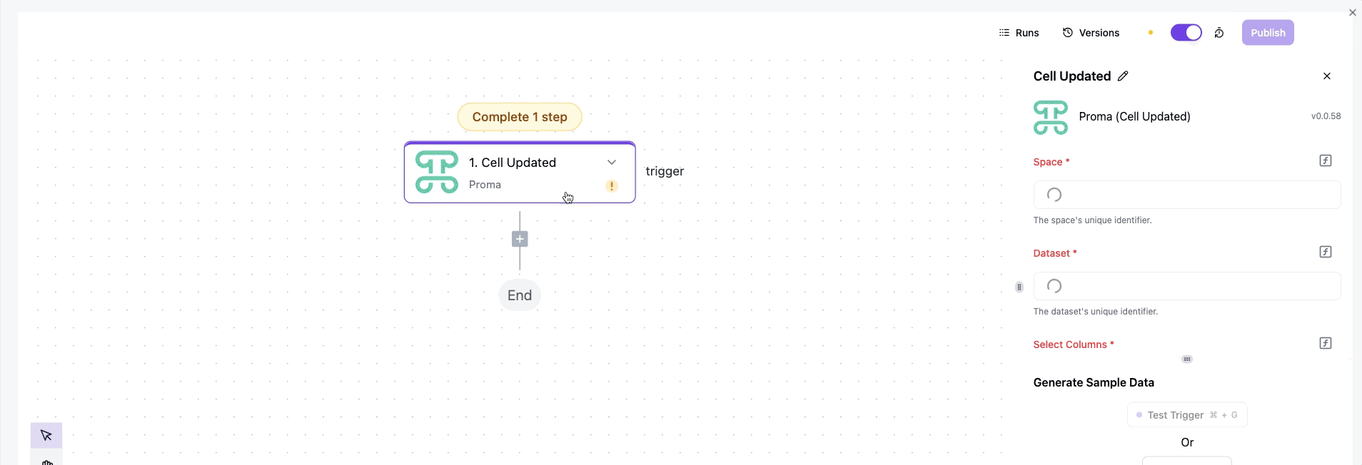 Cell Updated triggers when a specific cell value changes within a row. While Row Updated fires for any change in a record, Cell Updated provides granular control by monitoring individual fields. Perfect for workflows that should only activate when particular data points change—like triggering a credit check only when the loan amount field increases, or notifying a project manager only when the status column changes to "Blocked."